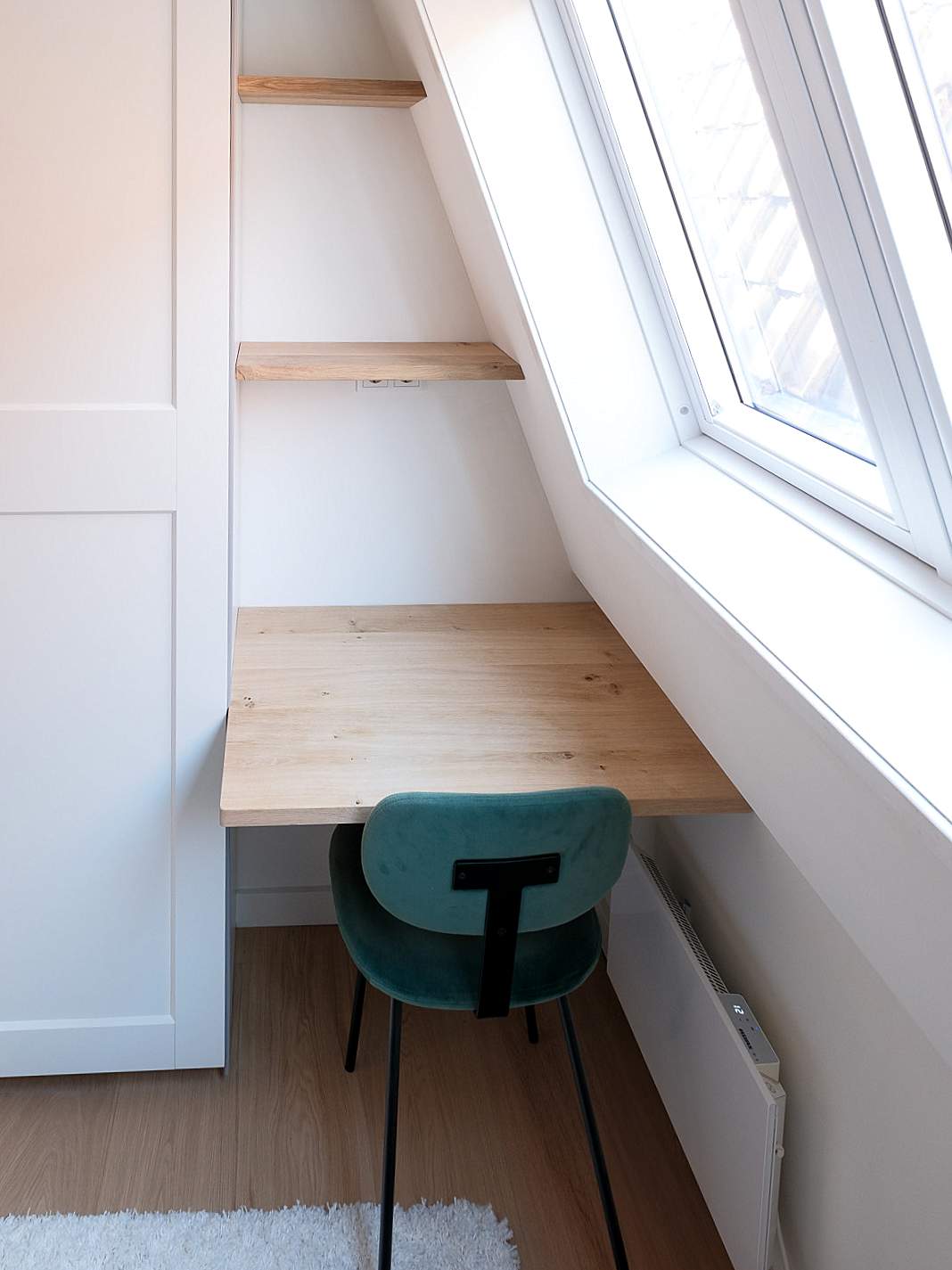 Moeilijke hoeken, grote of juist kleine ruimtes en schuine wanden of plafonds vormen geen probleem. Ik pas de meubels of het interieur hierop aan.