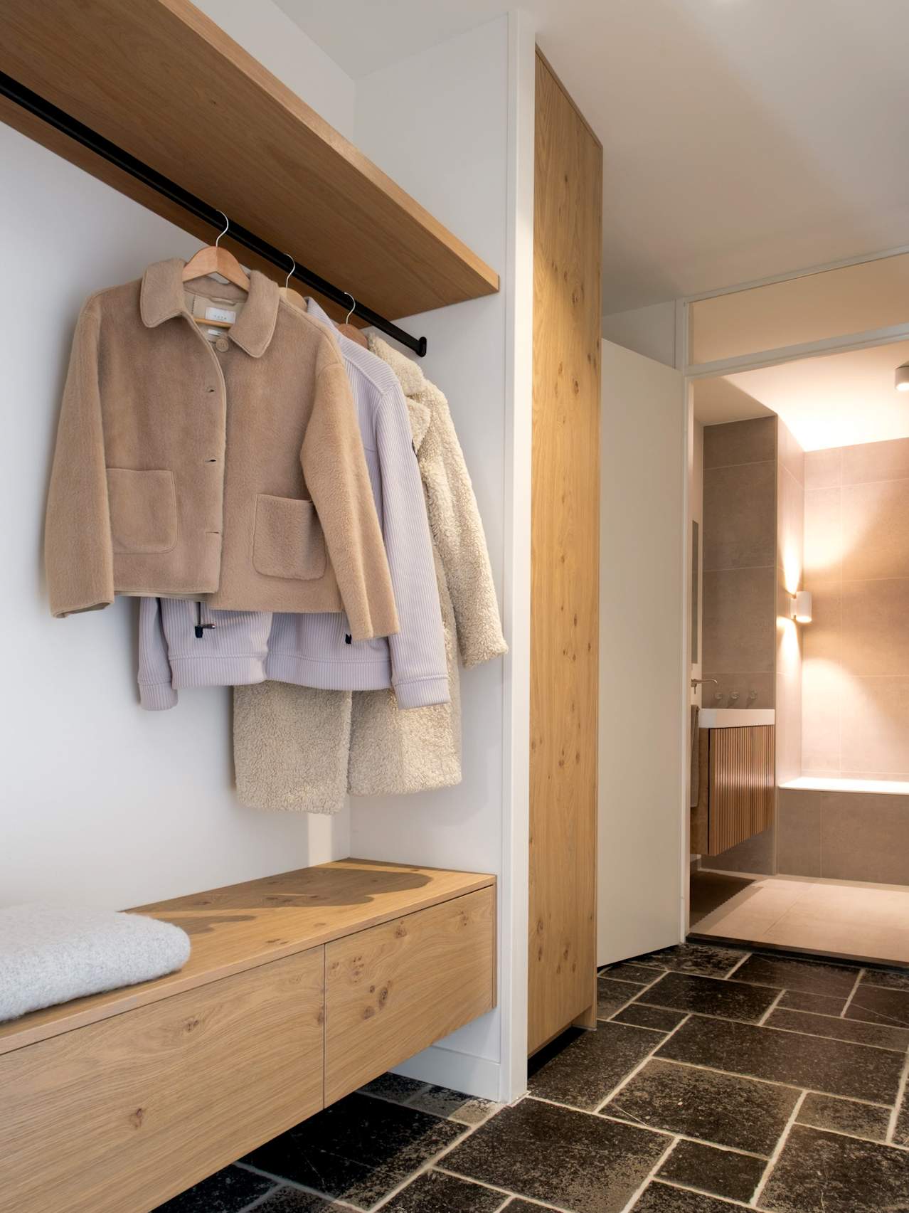Een grote spiegel, verlichting, een wasmachine en droger op hoogte in je kast ingebouwd; wat je ook wilt, alles kan. En ook qua materialen en kleuren is er heel veel mogelijk.
